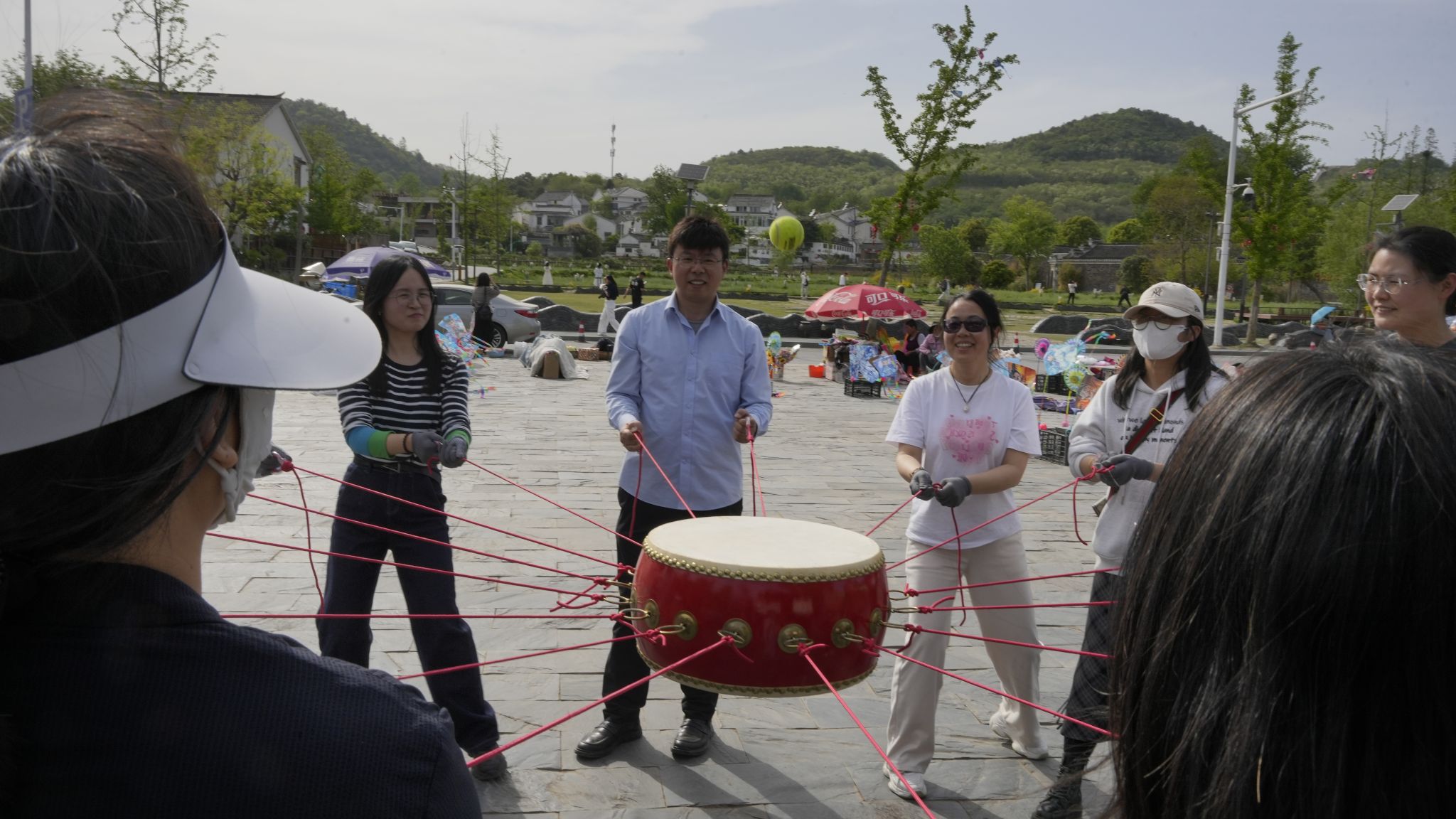 寓教于乐,畅享春日雅趣。活动还特别设置了“鼓动人心”和“益智棋牌”趣味环节。在“鼓动人心”游戏中,团队成员通过拉绳操控鼓面颠球,隐喻古建筑中“牵一发而动全身”的结构稳定性原理,工程管理系老师笑称:“这比计算建筑荷载还考验耐心!”午后,众人漫步千亩油菜花田,金黄花海与远山黛瓦相映成趣。城乡规划教研室教师们以专业眼光分析村落“宅院依山、水系绕田”的空间格局,感叹古人“天人合一”的规划智慧。