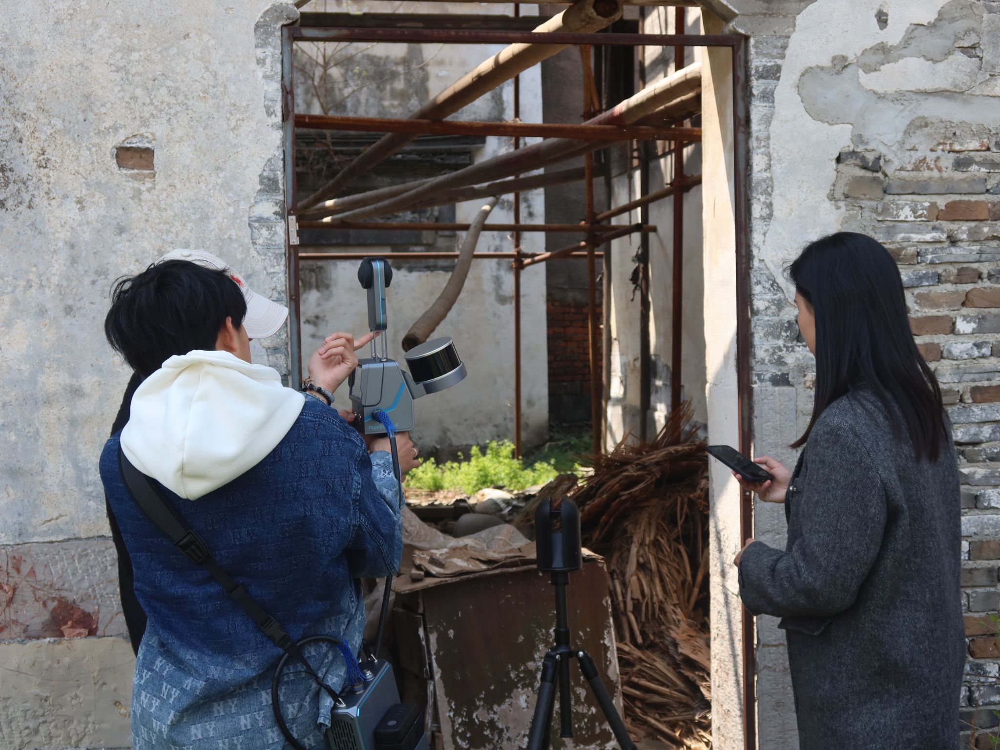 挂牌仪式后,太阳集团网站8722师生团队立即投入现场工作。10余名师生用激光测绘仪当“听诊器”,用无人机当“放大镜”,为青砖黛瓦、岁月残垣一次次地做“体检”。带队教师李冰希望学生通过实地测绘,能直观理解传统木构技艺,为后续“修旧如旧”修复方案积累数据。
