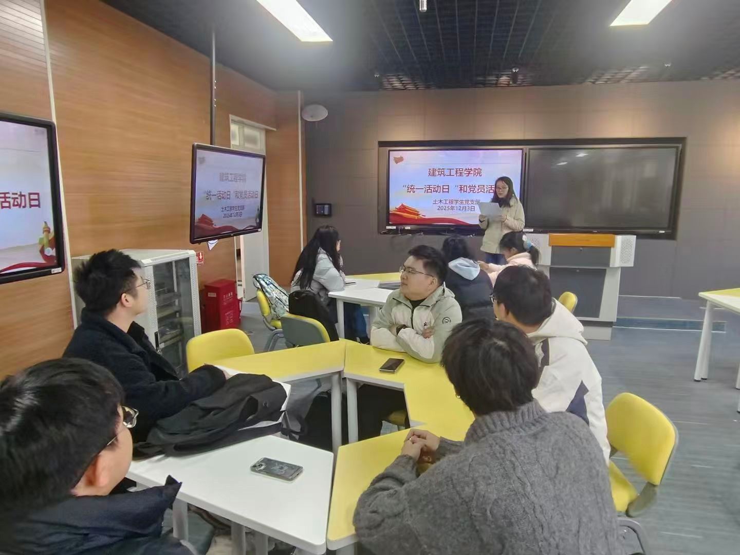 随后,各支部根据上级党组织统一部署和校党委要求,开展了基层党组织“统一活动日”和党员活动日。各支部组织全体党员集中学习习近平总书记近期重要讲话和指示批示精神;认真研读《求是》2025年第22期《习近平:因地制宜发展新质生产力》《习近平谈治国理政》第五卷等习近平总书记重要文章;学习《中国共产党纪律处分条例》;各支部学习党的创新理论教育作品《向新攀登》5集系列片第一集《立破推新》教育片,并结合实际开展讨论。会上,各支部收缴了12月份党费。