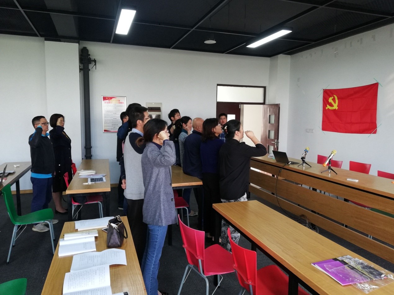 第二阶段,各师生党支部书记组织党员重读入党志愿、重忆入党经历、重问入党初心,每一位教工党员看到自己的《入党志愿书》都很激动,纷纷回忆起当时入党的经历,并畅谈了自己选择教师职业遵从育人的初心。学生党员们也回顾了自己入党经过,并以祖国的强大而感到自豪。最后,各支部书记带领各支部党员面向党员庄严宣誓,一起重温了入党誓词。