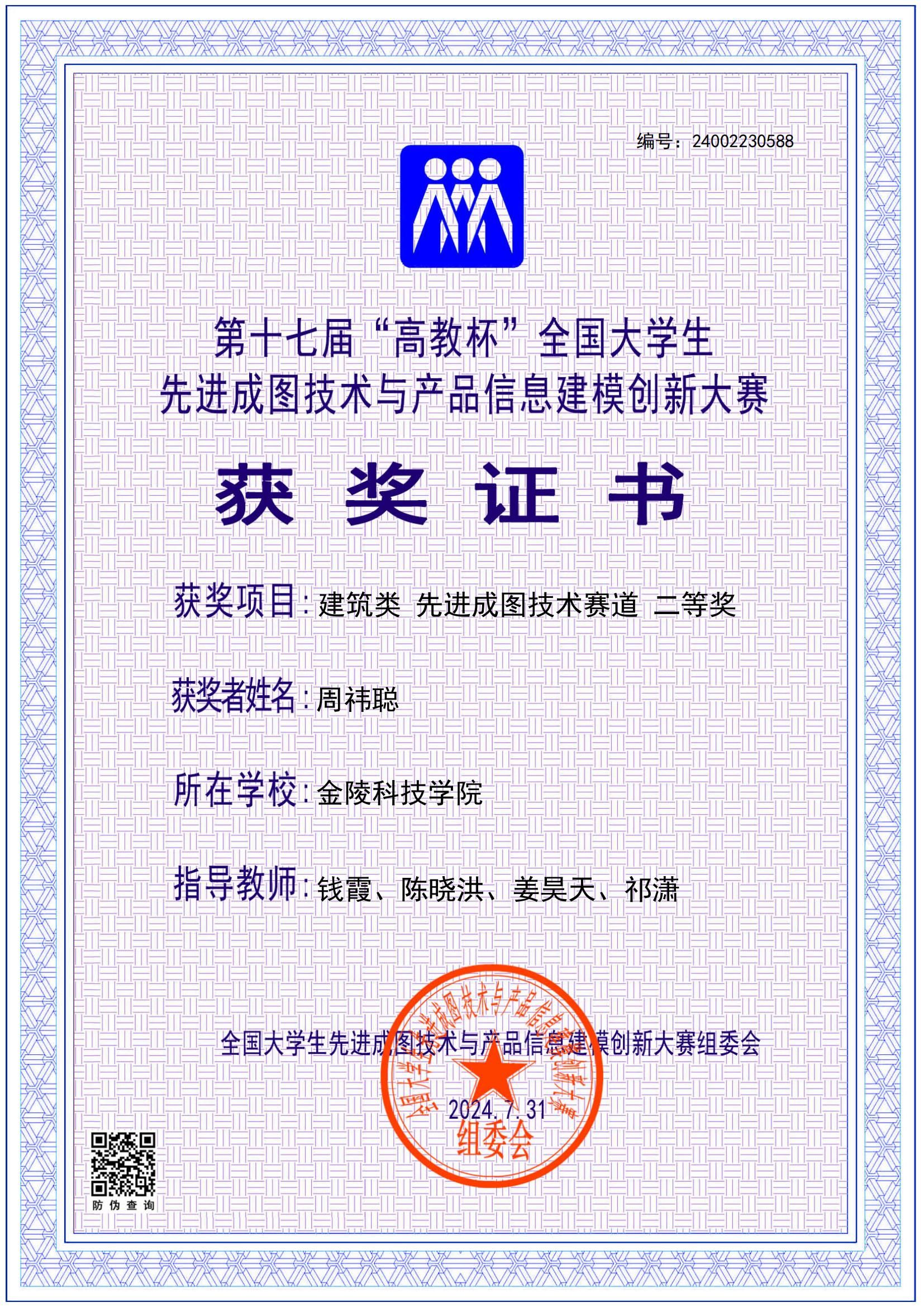 经过江苏省第四届大学生先进成图技术与产品信息建模创新大赛选拔,我院共有6位同学参加2024 年7月27日举办的第十七届全国大学生先进成图技术与产品信息建模创新大赛。经过激烈角逐,土木工程专业周祎聪、陶文昊,建筑学专业韩鑫玉在本次大赛中分别荣获二等奖1项、三等奖2项的好成绩。