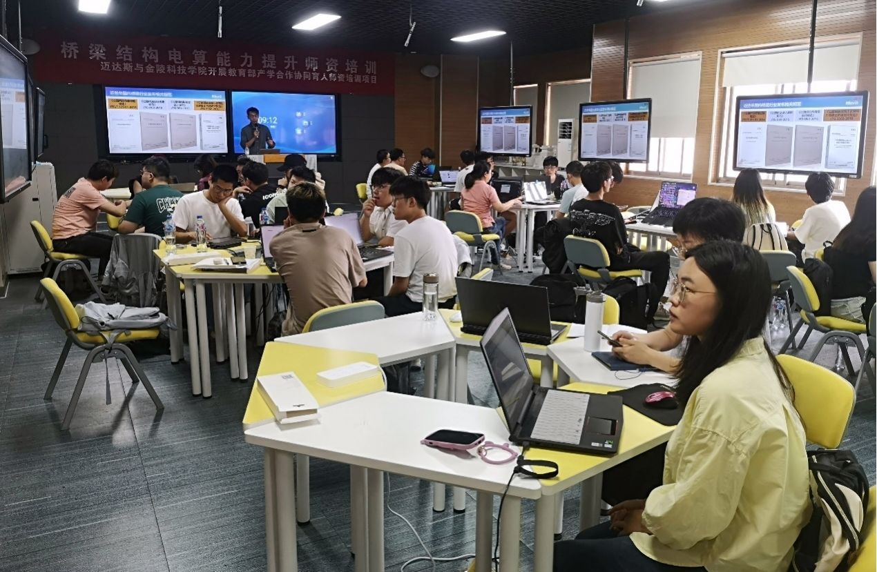 2023年6月6日~6月9日,依托教育部产学合作协同育人项目“桥梁结构电算能力提升师资培训”,校企双方在太阳集团网站8722联合举办了“桥梁结构电算能力提升师资交流培训会”,培训校内外师生达50余人。交流培训会主要包括高校老师、企业专家针对Midas软件在教学、科研及项目中的应用情况进行交流探讨,北京迈达斯技术有限公司技术人员针对Midas CIM桥梁三维正向设计、预制小箱梁桥分析与设计、钢箱梁建模与分析、桥梁抗震、桥梁检测与监控等内容进行培训。本次交流培训会取得了圆满成功,学员们收获满满。