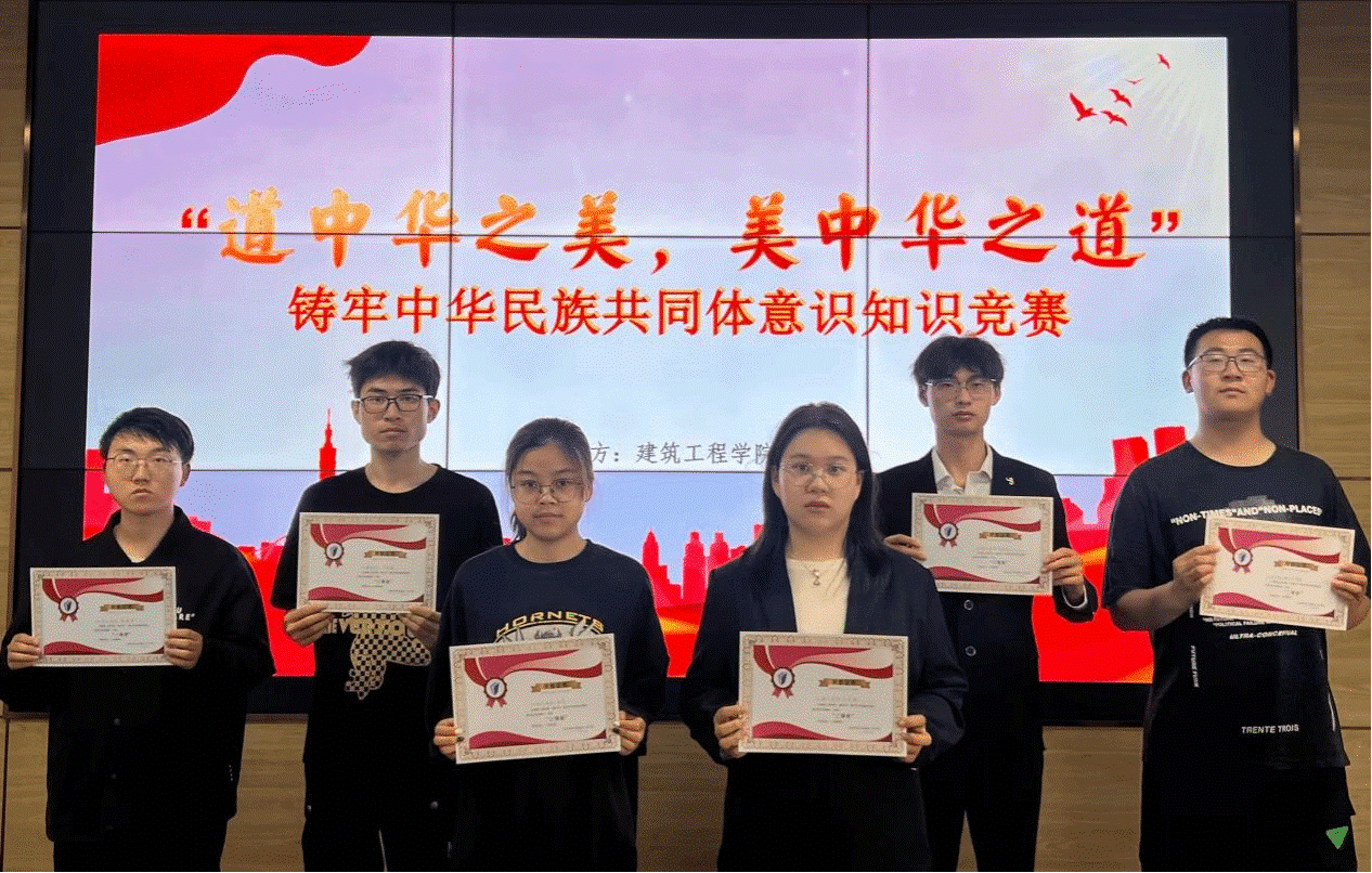 本次竞赛分为初赛和决赛两个环节,初赛采用线上答题的形式,有1081名学员积极响应参与,30名选手按照线上成绩排名进入决赛。决赛于工科楼B513展开线下笔试,围绕中华民族共同体的内涵特点、思想基础、发展历程、当代转化、世界价值进行考核。最终按照成绩排名选出6名出色选手,22城乡规划陈浩南获一等奖,22城乡规划府昱琳和22土木工程(3)班曹进获二等奖,21建筑学(1)班季俊辉、21城乡规划张宇和22城乡规划宋钰坤获三等奖。