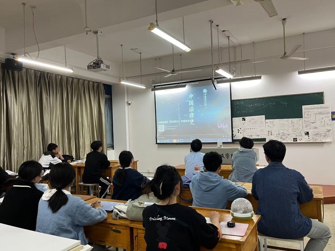 组织观看《历史长河中的中华法文化》、《中国法律史》、《中国法律大事记》、《中国法律的起源与特点》、《坚持习近平法治思想传承中华优秀传统法律文化》等中华优秀传统法律文化视频,将法治教育与中华优秀传统文化相结合,使青年学生更加坚定“四个自信”。