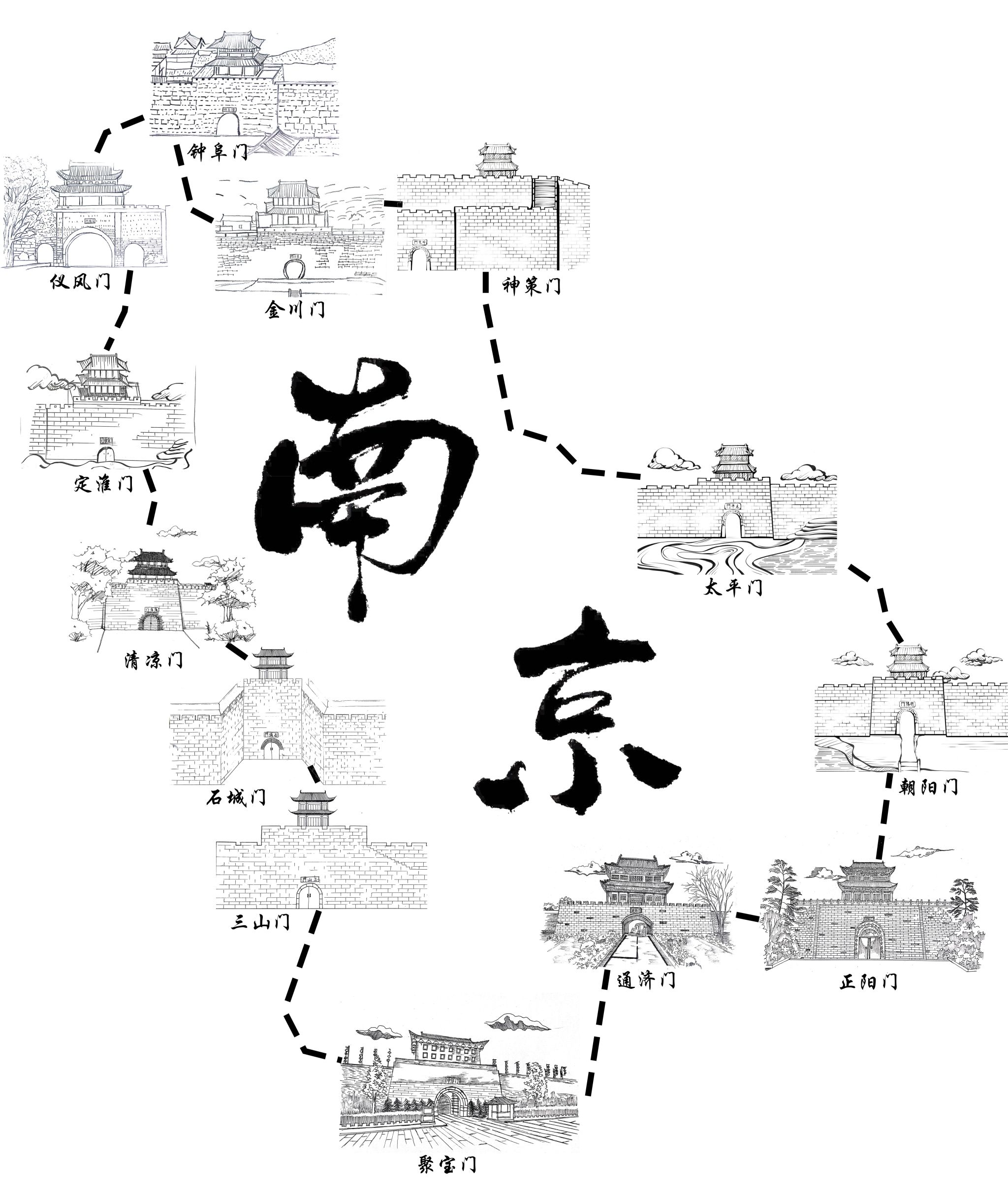 千载城墙,古韵犹存。作为新时代中国青年,以拳拳赤子心激荡知识力量,以殷殷报国行绽放青春光彩,以铮铮中华魂赓续工匠精神,诠释中华优秀传统文化的深刻内涵。基于对南京城墙博物馆的参观调研,团队成员们立足建筑学专业特长,将南京城墙的13座城门以手绘的形式呈现出来,最终拼成一套完整的南京城墙地图。一笔一墨,一琢一磨,团队成员们在纵横间感悟南京城墙的细腻与寥廓,汲取中华优秀传统文化所渗透的历史自信与文化自信。