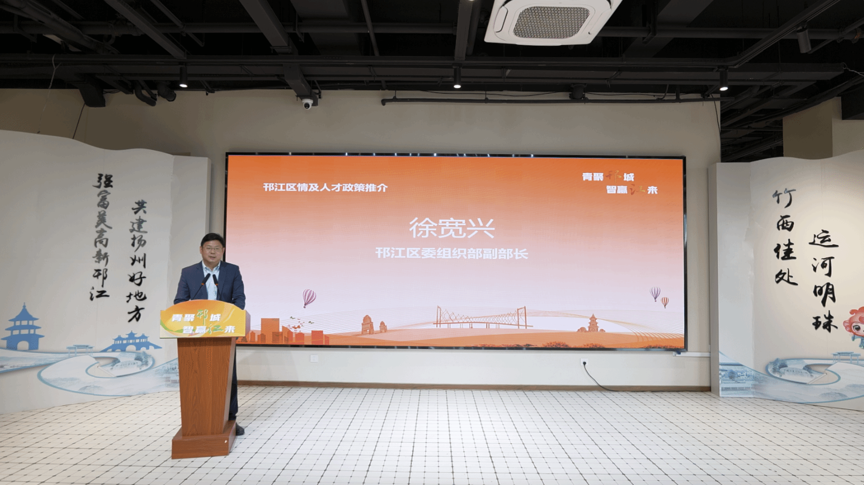 邗江区委组织部副部长徐宽兴同志作邗江区情及人才政策推介,介绍了邗江的产业基础、载体资源,鼓励学子们在邗江这片创新创业热土上,施展才华、建功立业。
