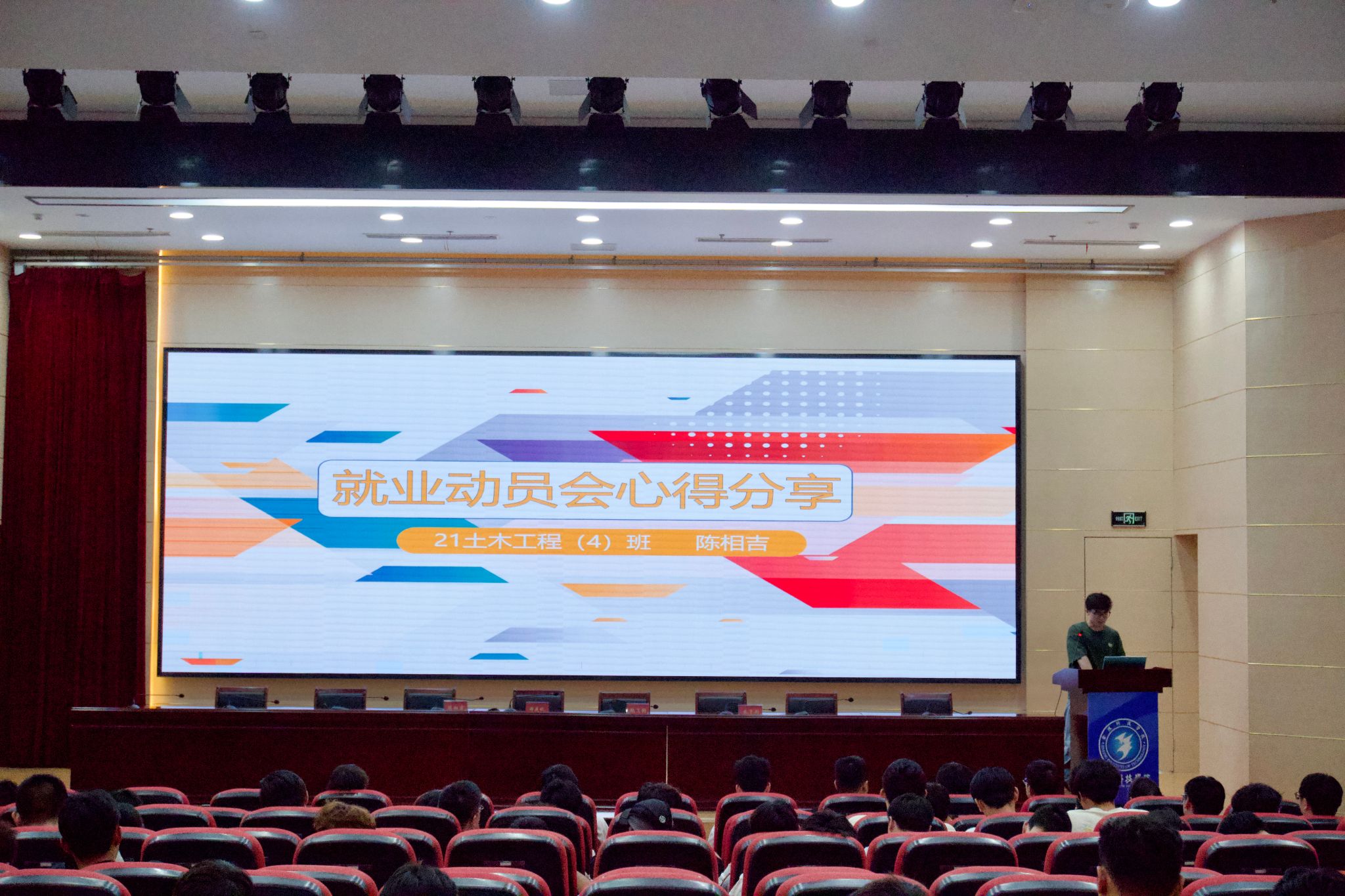 会上,已经被河海大学硕士研究生录取的朱子衡以及被苏州科技大学硕士研究生录取的何文静分享了考研心得,被盐城三新供电服务有限公司录用的陈相吉分享了求职经历。鲍飞豹老师介绍了2025届毕业生就业、考研等情况,分析了2026届毕业生的就业形势,详细介绍了2026届毕业生的工作安排、就业流程、就业政策以及就业常见问题,解读了简历制作的注意事项等。郑庆秋副书记在总结时强调三点:一是认清形势,把握机遇,增强就业信心。他分析当前建筑行业面临转型升级压力,传统岗位竞争加剧,但新基建(智慧城市、新能源基建)、绿色低碳技术、城市更新等领域释放大量新需求。他寄语:“行业变革期,既是考验,更是机遇——谁能主动适应,谁就能抢占先机。”二是明确方向,科学规划,提升核心竞争力。他教导毕业生们要有正确的自我认知,要结合兴趣、能力、价值观,明确“我想做什么”与“我能做什么”。不断提升自己“硬实力”和“软实力”。他强调动态调整:“职业规划不是一成不变的,要在实践中不断校准目标。”三是调整心态,积极行动,拒绝“躺平”与“焦虑”。他强调克服两种极端心态,既要警惕“盲目乐观”也要拒绝“消极焦虑”。要“早”字当头、“广”字拓路、“实”字落地。