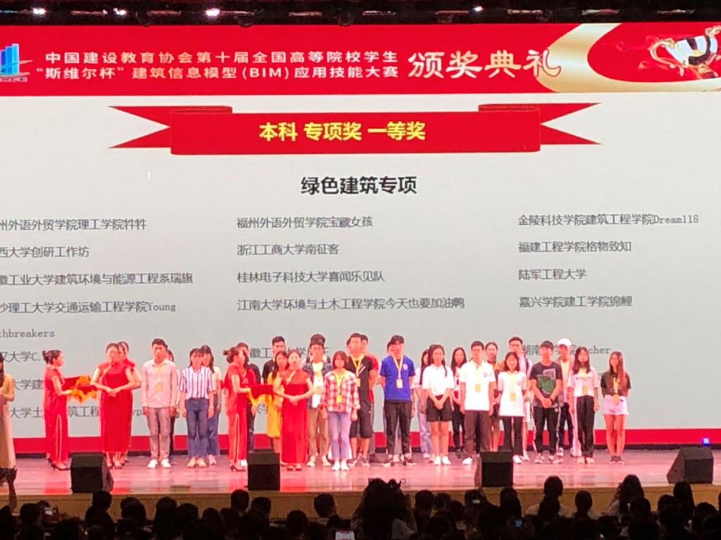 2019年5月13日太阳集团网站8722“DREAM118”和“模之筑”两个代表队参加在广西大学举办的第十届全国高校大学生“斯维尔”杯建筑信息模型BIM大赛,经过激烈角逐,最终荣获“绿色建筑设计”专项一等奖1项、“工程设计”专项二等级1项三等奖1项、“工程管理”专项三等奖1项、“全能奖”二等奖1项。