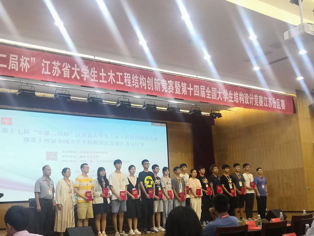 江苏省大学生土木工程结构创新竞赛是全省高校土木专业本科生的高水平学科竞赛活动,通过将课程教学和工程案例有效结合,激发大学生创新潜能、协作意识和实践能力。希望在今后的比赛中我院师生能够再接再厉,勇创佳绩!