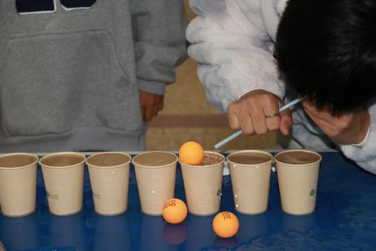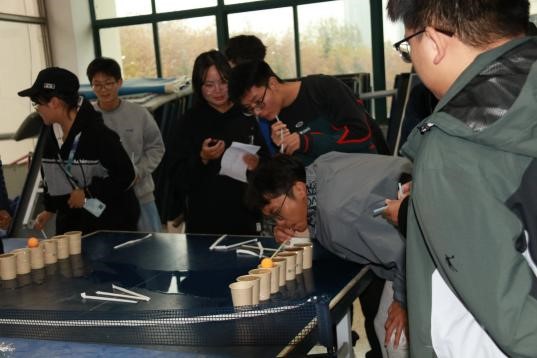 在隔空取物的比拼中,有的队伍轻松完成,有的经历了数次失败后才成功完成。这一项比拼考验的是大家对物理知识的了解与运用。通过这项比赛,同学们对物理知识在日常生活中的应用有了更深的认识。