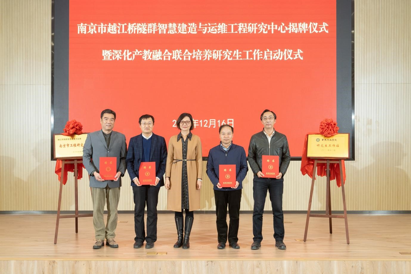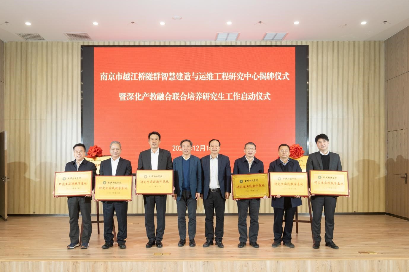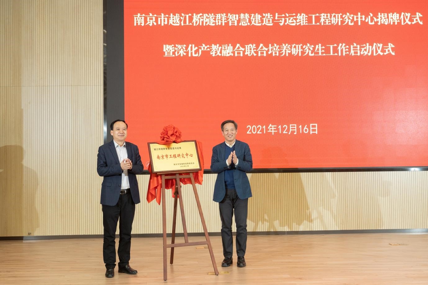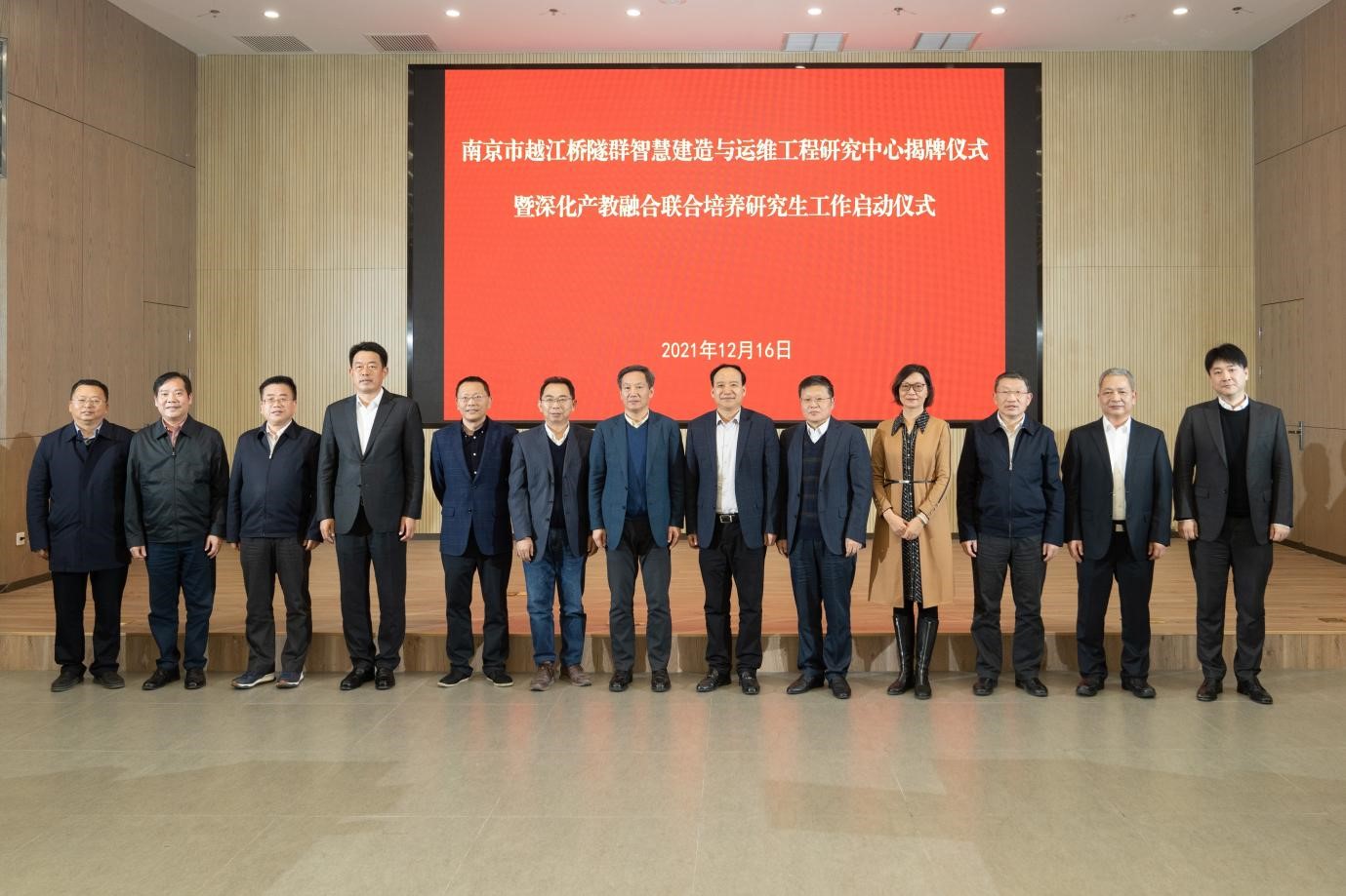 12月16日,太阳集团tcy8722与南京市公共工程建设中心隆重举行“南京市越江桥隧群智慧建造与运维工程研究中心”揭牌仪式暨深化“产教融合”联合培养研究生工作启动仪式。太阳集团tcy8722校长刘永彪、副校长冯年华、副校长倪杰、相关职能部门和建工学院负责人、土木水利硕士点骨干成员,南京市公共工程建设中心主任武焕陵、副主任章登精、郭志明及相关处室负责人出席仪式,校长刘永彪揭牌并讲话。