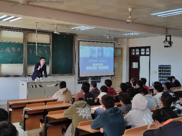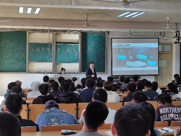 总经理张盖高级工程师作题为“从行业看就业”的报告。张总结合行业发展与企业发展,向同学们指出了建筑行业目前面临的挑战以及未来发展给同学们带来的机遇。最后以“每一个企业都需要突破自我局限,不断变革创新,才能找到新的定位和新的发展空间。船停在码头是安全的,但那不是造船的目的。人在家里是最舒服的,但那不是人生的意义。最美好的生活方式,莫过于和一群志同道合的同志奔跑在理想的路上!回头,有一路的故事。低头,有坚定的脚步。抬头,有清晰的远方!”勉励同学们珍惜大学时光,树立正确的人生观和价值观,努力学习知识提升本领,踔厉奋发,实现人生的意义,为社会的发展做贡献。