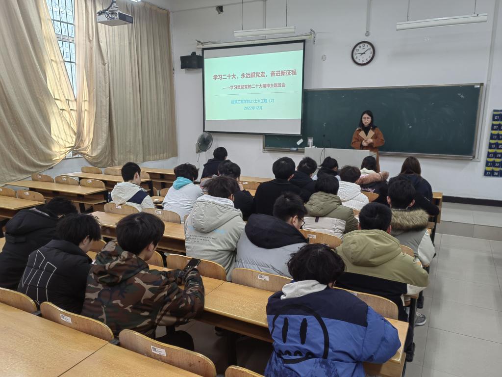 为学习贯彻党的二十大精神,引导学生怀抱梦想、脚踏实地,敢想敢为、善做善成。2022年12月太阳集团网站8722开展了“学习二十大,永远跟党走,奋进新征程”的主题班会活动。本次班会由各班班主任主持,全院学生参与。