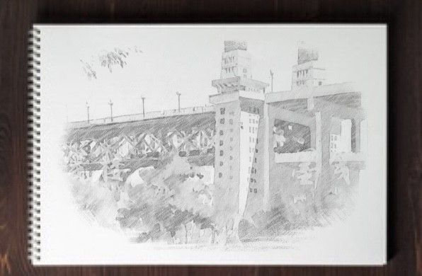 “双层桥面横跨长江,连接了两岸的城市,也架起新中国自主建造的信心。如今的中国国力愈发强盛,青年的我们也将努力传承大国工匠精神,为社会建设添砖加瓦。”这是2021级建筑学专业学生虞锦弘在实地考察了大桥后发出的感慨,他以素描细腻的线条勾勒出了南京长江大桥的雄伟气势,将桥身的结构细节描绘得淋漓尽致,明暗对比的巧妙运用,更赋予了作品立体感和深度。