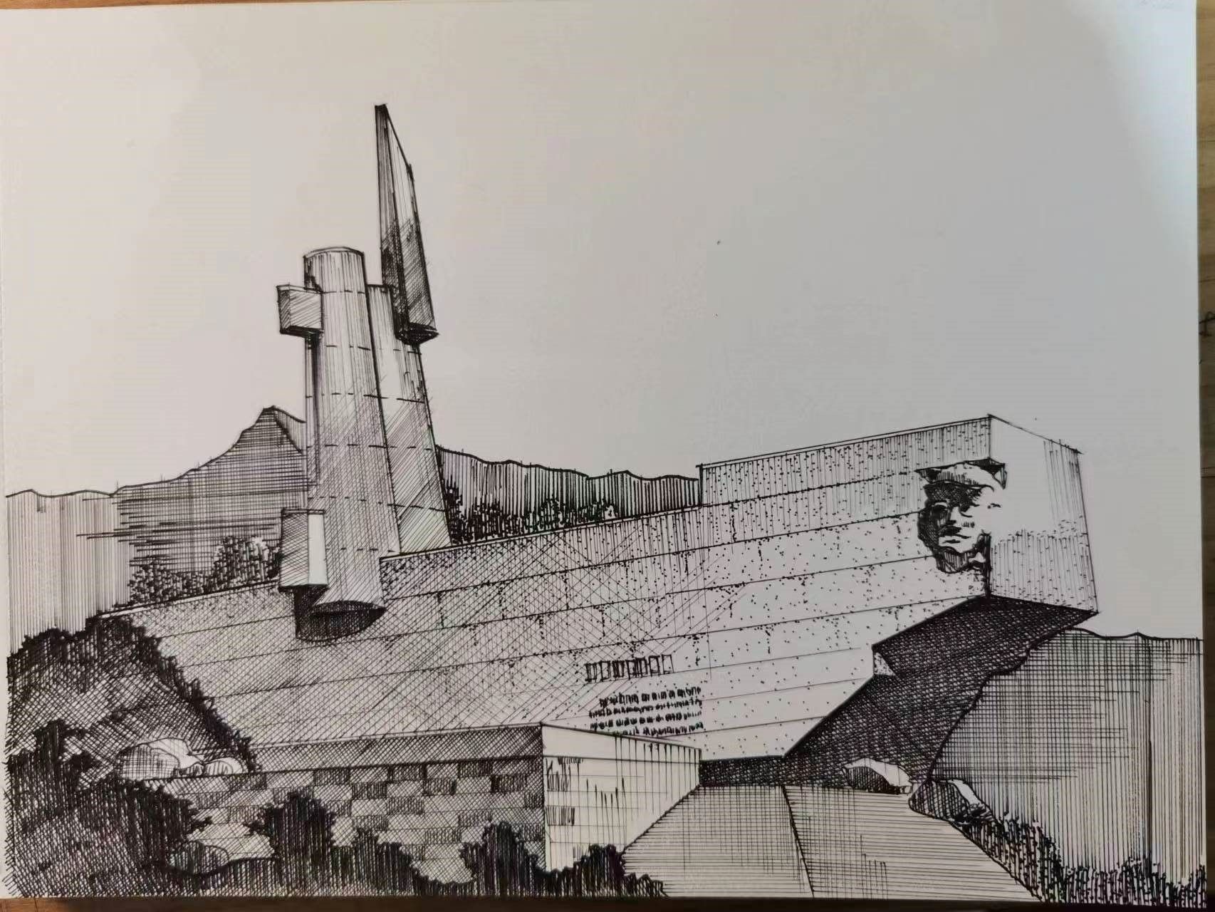 在参观了深圳市南山烈士纪念馆后,2021级建筑学专业的学生虞锦弘以独特的艺术视角临摹了一幅钢笔画。 这幅钢笔画作品将南山烈士纪念馆庄重典雅、厚重沉稳表现得淋漓尽致。对于这幅作品,虞锦弘表示:“通过钢笔这一简洁有力的绘画媒介,我希望能够传达对南山烈士的敬意。这座纪念馆记载了抗日烈士们的英勇牺牲,也承载着中华民族的坚韧意志。”