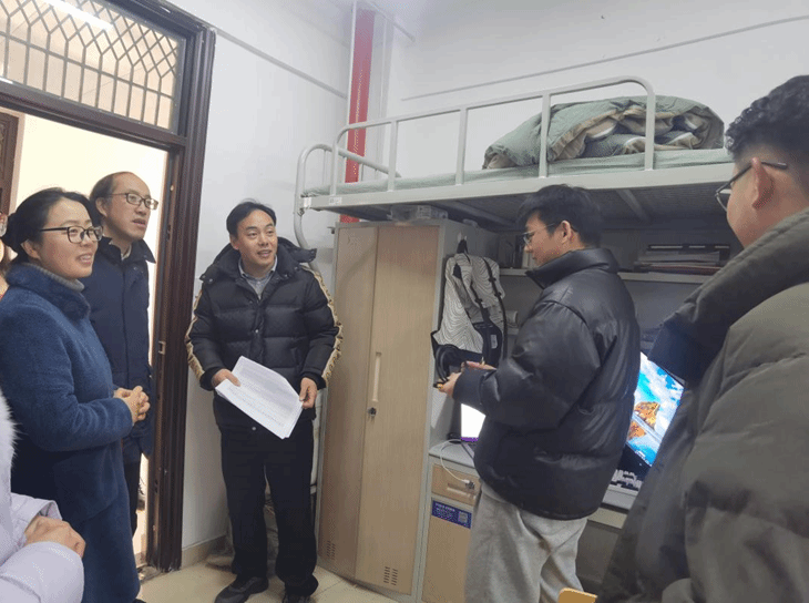 杨书记特别关心学生返校情况,与学生进行了亲切交谈,强调宿舍消防用电安全并鼓励学生积极参与宿舍安全管理中来,守好宿舍安全。