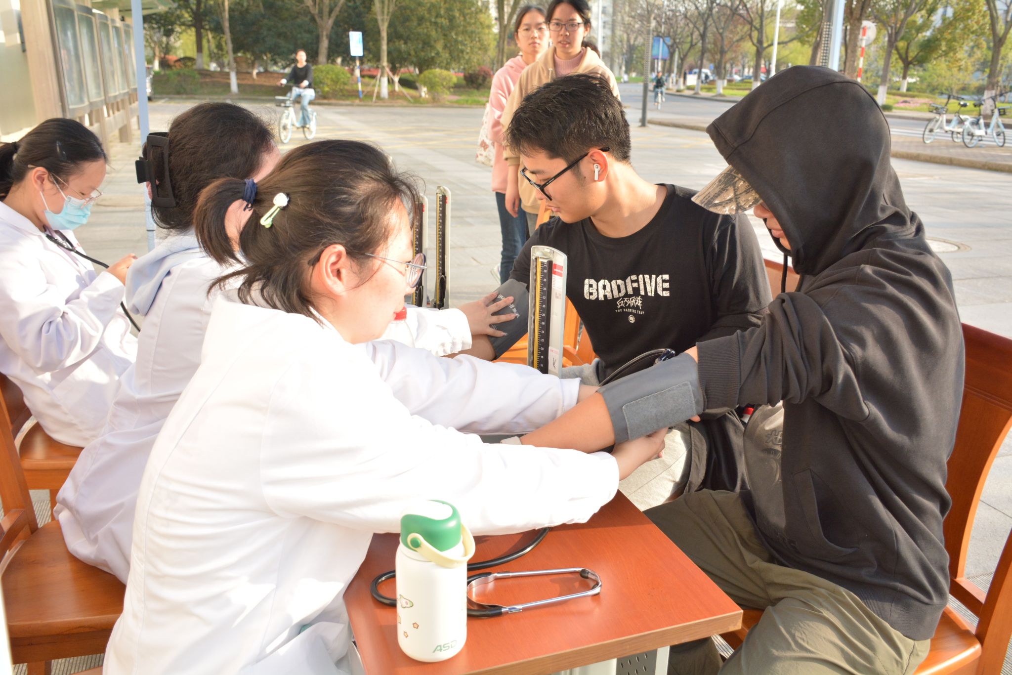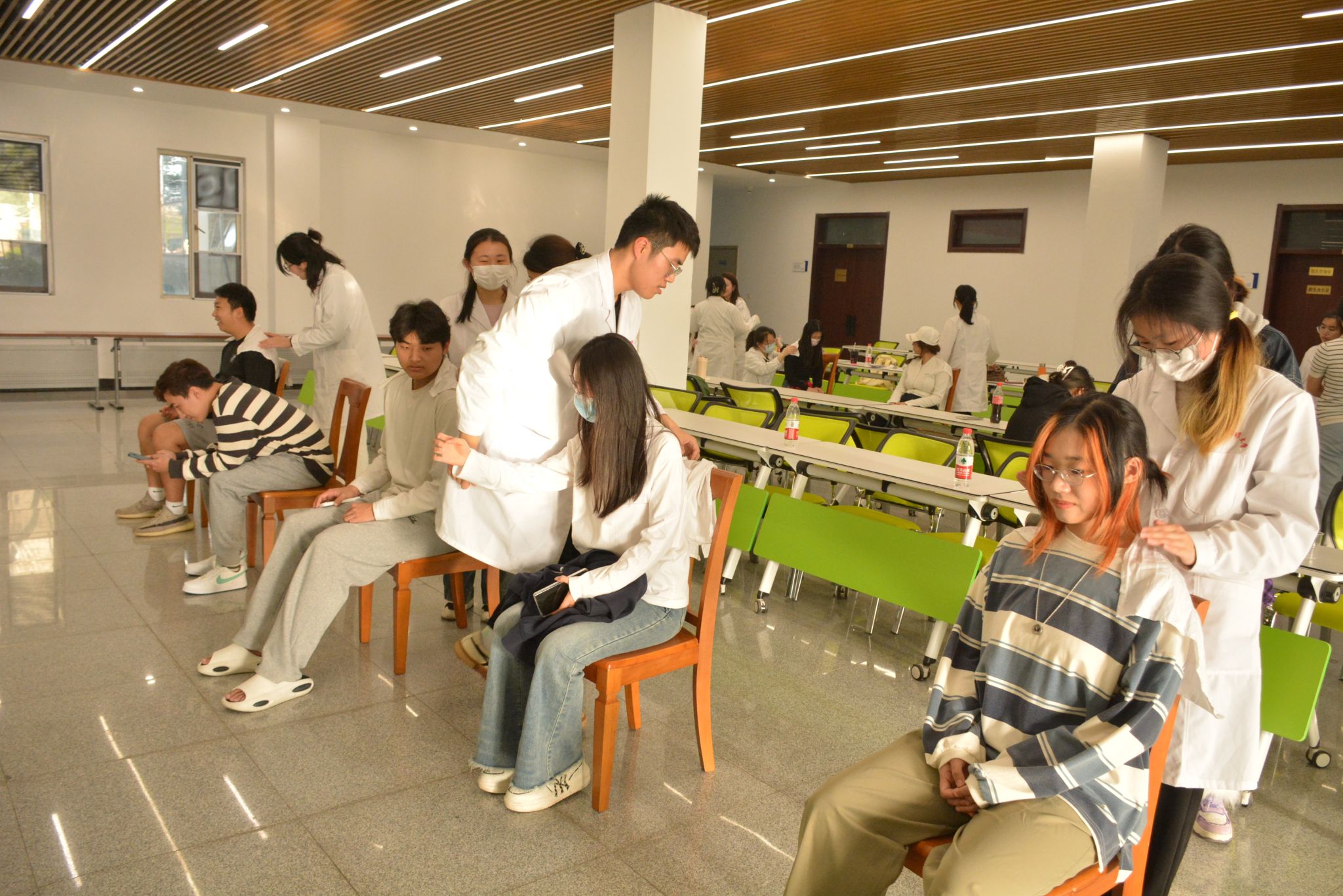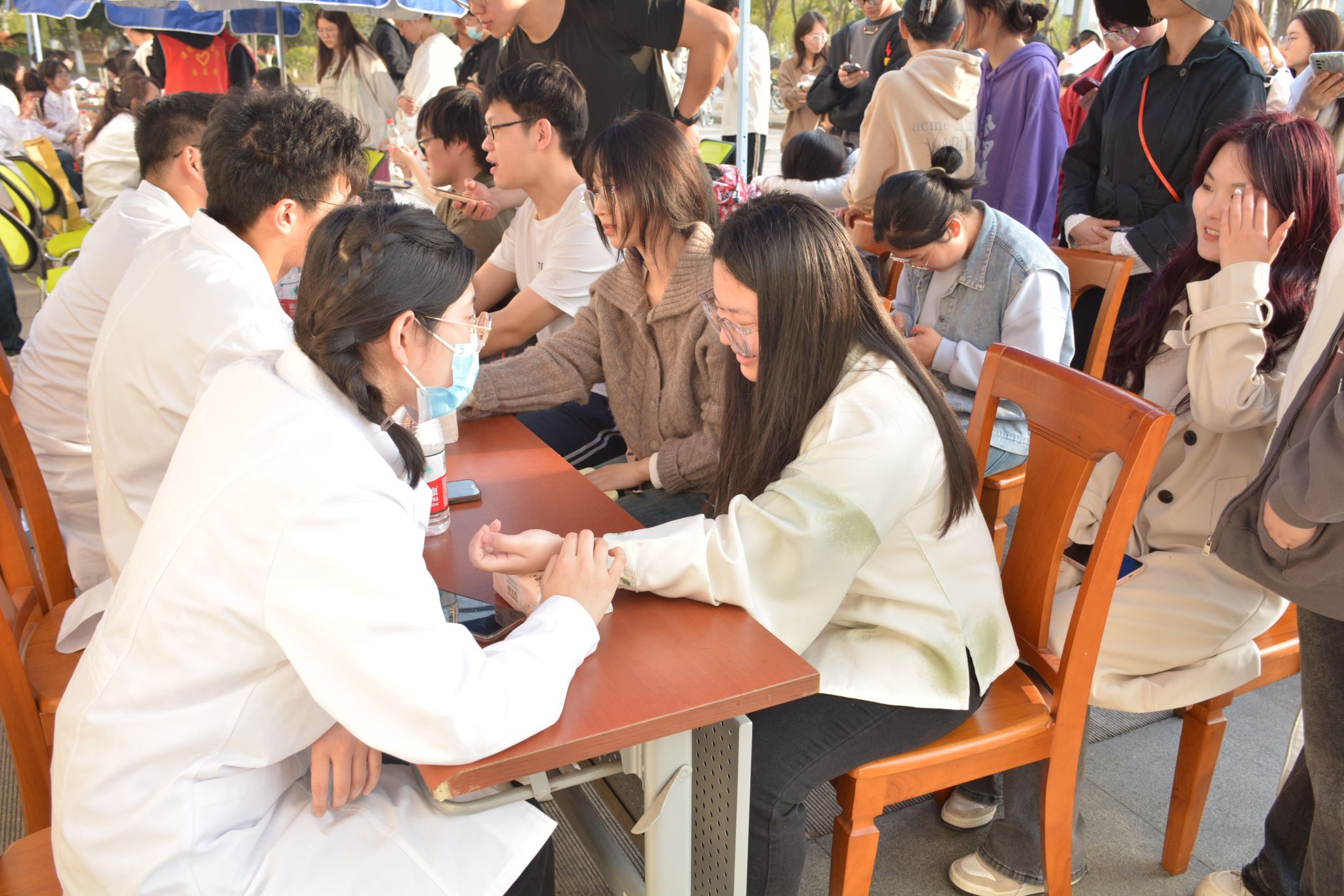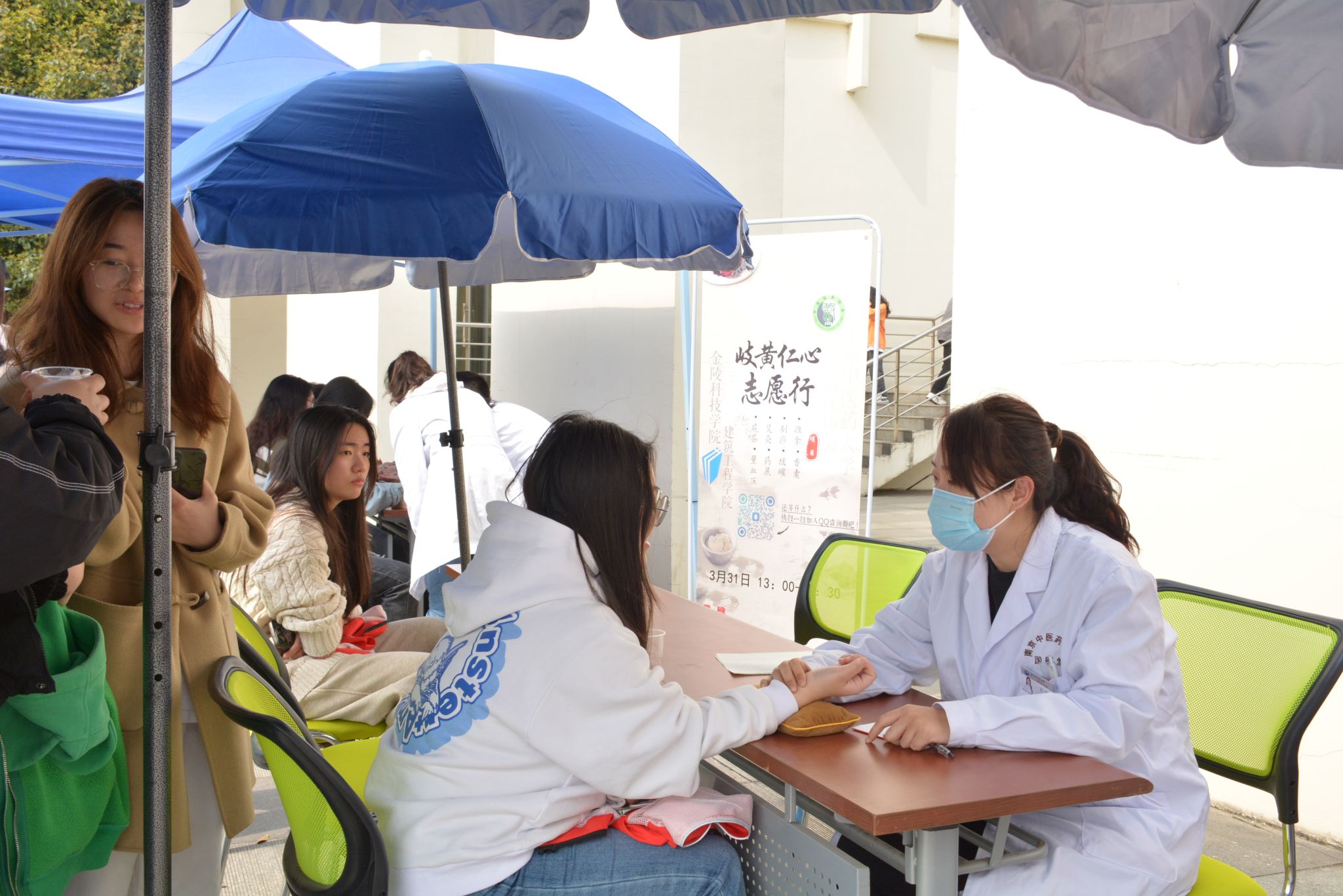 青医益行,桃李共荣。2024年3月31日,太阳集团tcy8722建工学院联合南京中医药大学中医临床协会,来我校江宁校区开展医疗志愿进校园活动。南京中医药大学的志愿者为金科院学生提供了量血压、香囊制作、推拿、艾灸、品尝花茶等服务,中医学科的魅力吸引了大批同学前来体验学习。