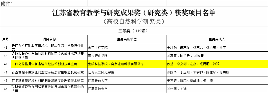 我院“土木工程专业中职与应用型本科分段培养体系研究”项目获2018年江苏省教育教学与研究成果奖(研究类)(教育研究类)三等奖;我院左熹、毛昆明老师参与的“一体化榫接复合保温墙关键技术创新及其应用”项目获2018年江苏省教育教学与研究成果奖(研究类)(高校自然科学研究类)三等奖。