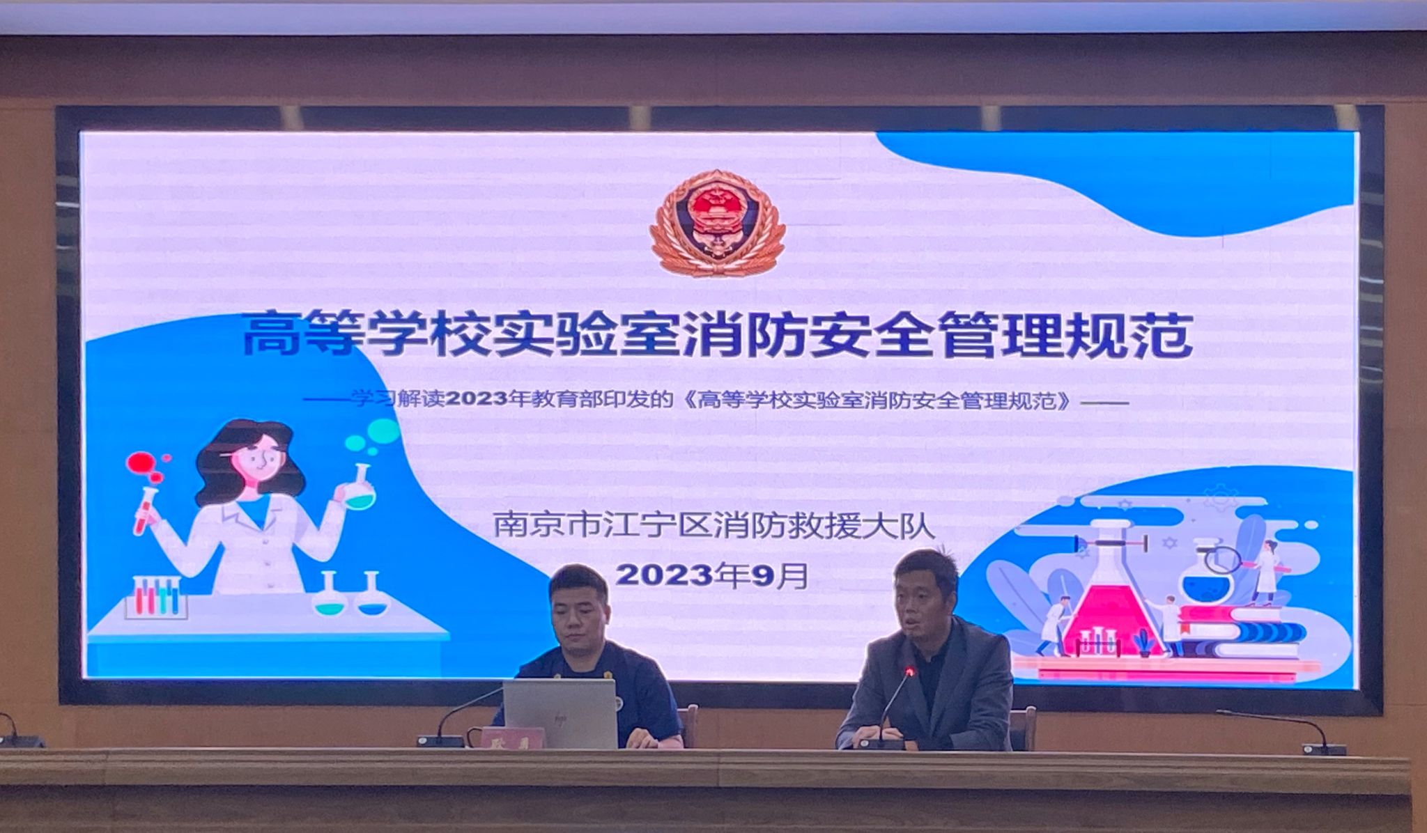 培训主要学习和解读了教育部颁布的教育行业标准《高等学校实验室消防安全管理规范》、观看了全国十二所高校实验室消防安全典型案例。培训过程采用宣讲结合现场问答模式,指导培训人员学习领会《规范》全文,查找现场安全隐患,对灭火器等消防器材进行灭火使用演练。