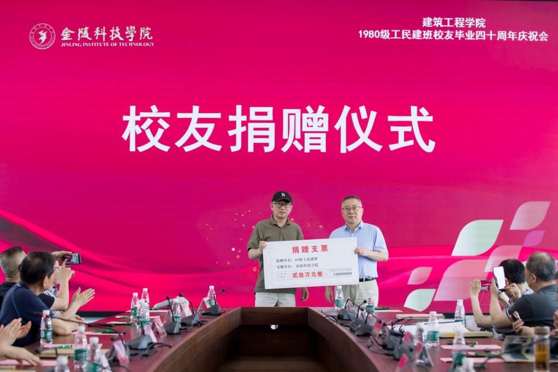 刘永彪对1980级工民建班校友毕业四十周年返校表示热烈欢迎。他回顾了金陵职业大学成立之初,作为首届毕业生的1980级校友勤学笃行、高质量就业的辉煌历史;介绍了学校近年来的发展历程和建设成效。他表示,学校的发展离不开历届校友们的鼎力支持和帮助。当前,学校紧扣“两全”主题,坚持“两建”目标,深化“两化”战略,持续深化产教融合、科教融汇、校企合作,持续加强内涵建设,不断提升应用型人才培养质量,奋力推进特色鲜明的高水平新兴应用型大学建设。他希望各位校友能以今天的返校活动为契机,多联系、勤走动、常交流,一如既往地关心支持母校工作,凝心聚力助推母校高质量发展。