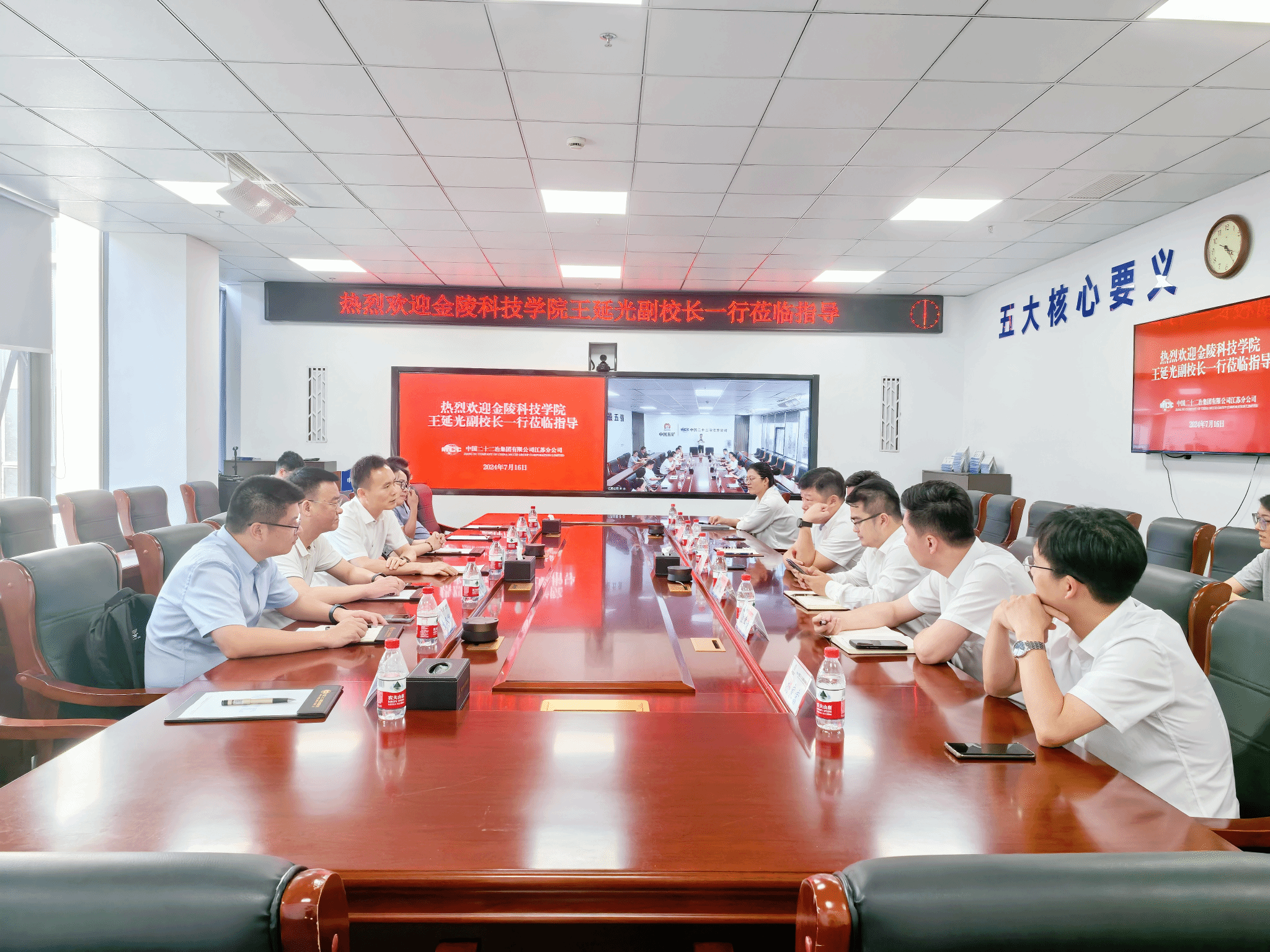 7月16日下午,副校长王延光带领太阳集团网站8722班子成员和相关负责人到中国二十二冶集团有限公司江苏分公司开展“访企拓岗促就业”活动。公司总经理张盖热情接待了王延光一行,我校2023届校友仇琦新、顾坤参加座谈会。