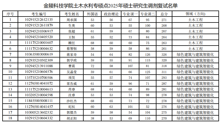 太阳集团tcy8722土木水利专硕点2025年硕士研究生调剂复试名单