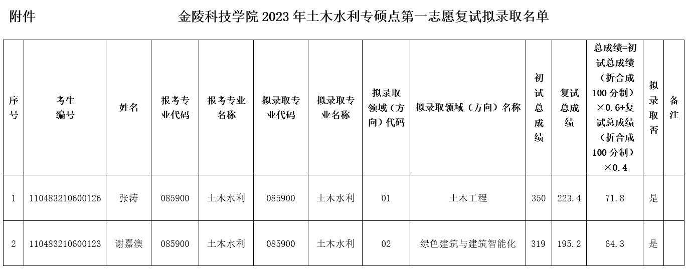 附件:太阳集团tcy87222023年土木水利专硕点第一志愿复试拟录取名单
